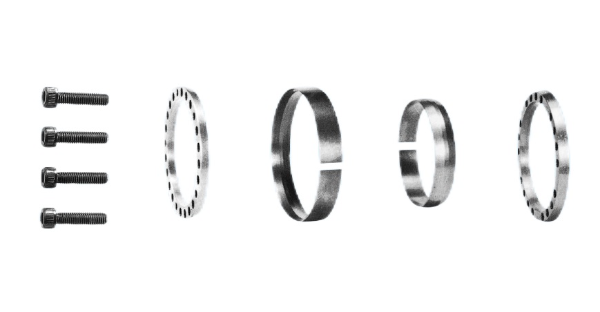 脹緊套主要由內(nèi)環(huán)、外環(huán)、螺栓等部件組成。其工作原理是通過擰緊螺栓,使內(nèi)環(huán)和外環(huán)之間產(chǎn)生軸向壓力,從而使內(nèi)環(huán)膨脹并緊密地抱緊軸,外環(huán)收縮并緊密地抱緊輪轂,實現(xiàn)軸與輪轂的無鍵連接。