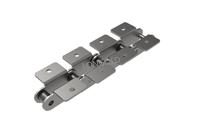 與短節(jié)距A系列滾?鏈條相?,鏈條節(jié)距增加1倍(稱為雙倍節(jié)距),鏈板形狀為直板形,鏈條的兩側(cè)帶各有2個彎板附件,且附件上有一個螺孔的形式。依照J(rèn)IS,ISO和ASME標(biāo)準(zhǔn)。