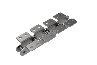 與短節(jié)距A系列滾?鏈條相?,鏈條節(jié)距增加1倍(稱為雙倍節(jié)距),鏈板形狀為直板形,鏈條的單側(cè)帶有直立板附件,且附件上有兩個螺孔的形式。依照J(rèn)IS,ISO和ASME標(biāo)準(zhǔn)。