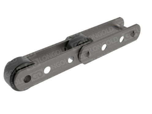 軸承滾子輸送鏈采用獨(dú)有構(gòu)造,在滾子和套筒之間插入了筒形圓柱,降低鏈條的行走抵抗,大幅提高滾子的容許負(fù)荷,延長(zhǎng)套筒滾子之間的磨損壽命。實(shí)現(xiàn)了普通輸送鏈難于達(dá)到的高效率化,低成本化,并可抑制粘滑,延長(zhǎng)滾子導(dǎo)軌的使用壽命。