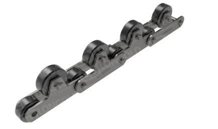 在兩側(cè)安裝側(cè)置滾輪,或者頂部安裝頂置滾輪的大型輸送鏈條。