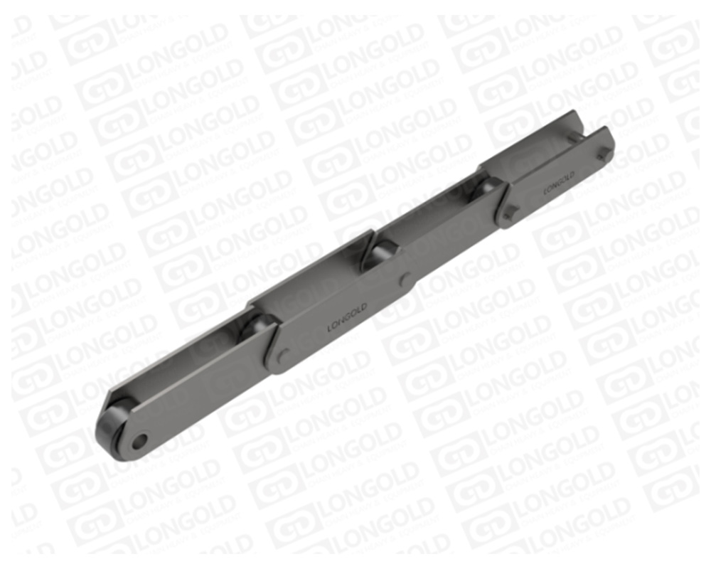 一種大型輸送鏈條,沒有滾子,因此被用于有拖輪的輸送機(jī)和推進(jìn)鏈輸送機(jī)以及類似的裝有傳遞推力的輸送線上。通過附加一個可分離的滾車,這種鏈條可以輸送很重的負(fù)載。