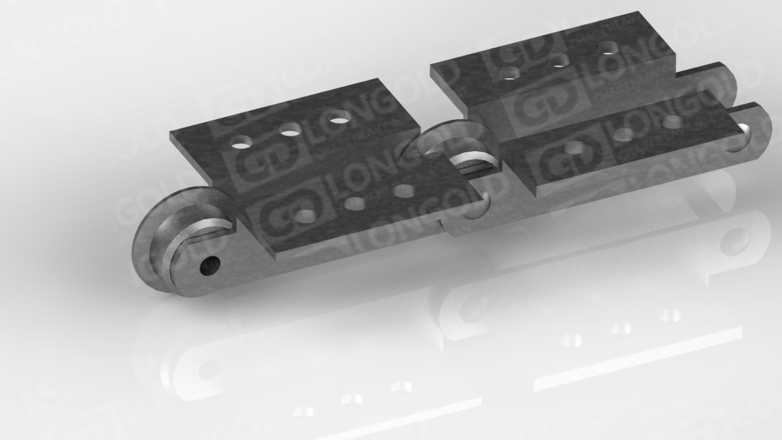 鏈條由雙倍節(jié)距鏈條衍生而來(lái),通過(guò)裝備標(biāo)準(zhǔn)附件或非標(biāo)附件使鏈條滿足特定的工作需求。