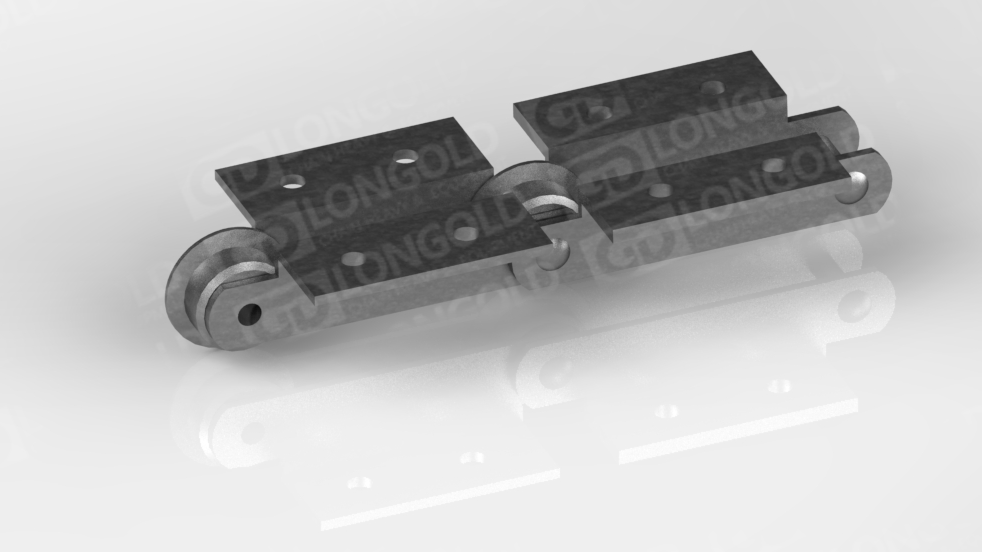 鏈條由雙倍節(jié)距鏈條衍生而來,通過裝備標準附件或非標附件使鏈條滿足特定的工作需求。