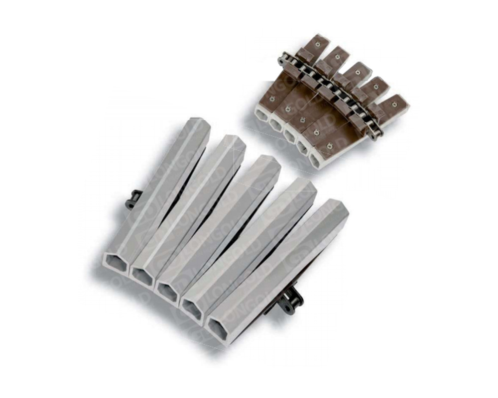 夾瓶鏈設(shè)計(jì)用于夾持和輸送瓶裝產(chǎn)品,常見于飲料、啤酒、食品加工和制藥行業(yè)的自動(dòng)化生產(chǎn)線。