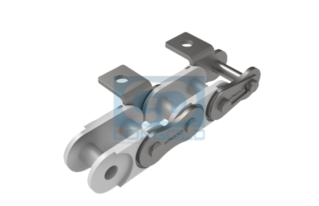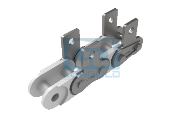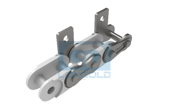 使用工程塑料制內(nèi)鏈節(jié)(聚醛樹脂),外鏈節(jié)采用SUS304材質(zhì)的鏈條,鏈條單側(cè)帶單孔彎板附件,附件表示為:A1。 具有免加油,長壽命和低噪音的特點(diǎn)。我們也可制造作為特殊品的B系列規(guī)格塑料組合鏈。
