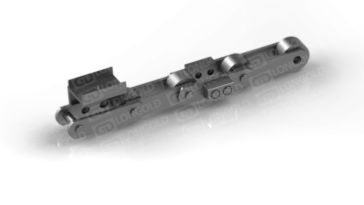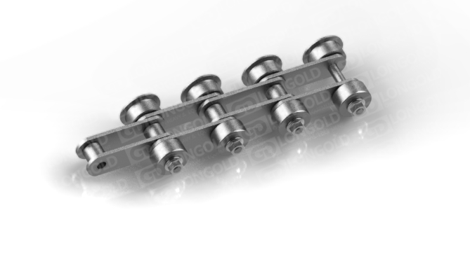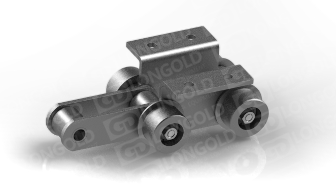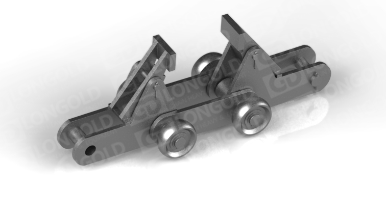 帶側(cè)置滾輪的汽車(chē)汽車(chē)生產(chǎn)線(xiàn)鏈條,側(cè)置滾輪能減少鏈條運(yùn)動(dòng)時(shí)的摩擦阻力,使鏈條能夠更加順暢地在軌道上運(yùn)行。