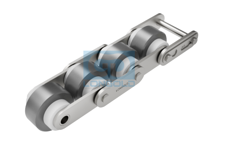 采用小直徑滾子與大直徑滾子組合的獨特結構,實現了3倍的高速輸送。和其他輸送鏈條相比,同等的輸送物速度時,倍速鏈的運行速度更低,運行噪音也更低,可以低噪音地進行堆積。鏈條本體為為鋼制,滾子為工程塑料制或者鋼制。