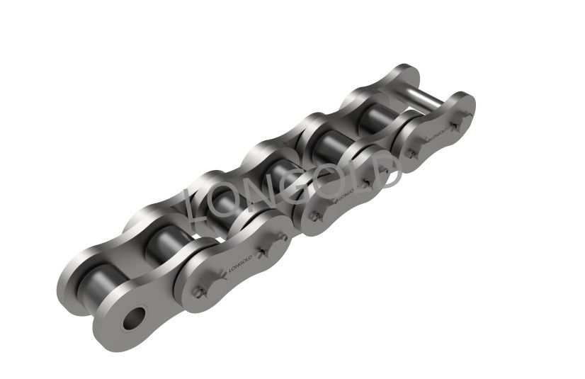 開口銷滾子鏈條,是指滾子鏈條每節(jié)連接處銷軸易端采用開口形式,用開口銷卡住以防外鏈片脫落。由于采用了開口銷結(jié)構(gòu),鏈條每節(jié)都可以方便拆卸更換,但其穩(wěn)定性弱于鉚合型。