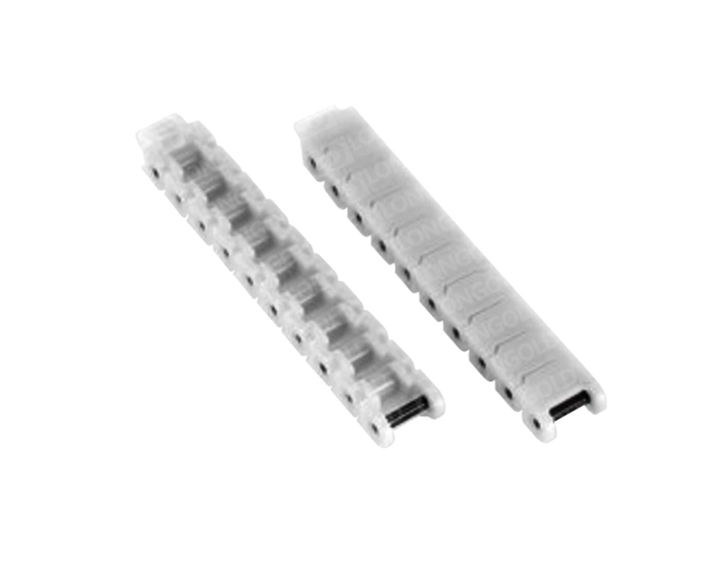 塑料塊形鏈條是一種用于輸送小件物品的鏈條,其特點是具有較小的節(jié)距和平滑的頂板表面,可以減少物品在運輸過程中受到的損壞。
