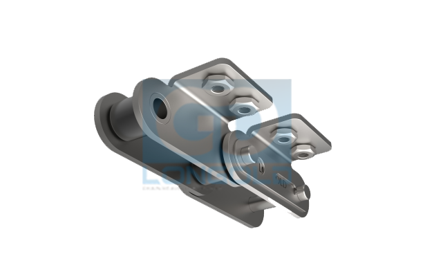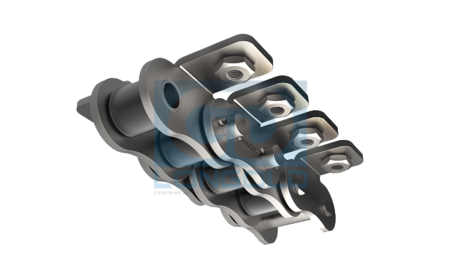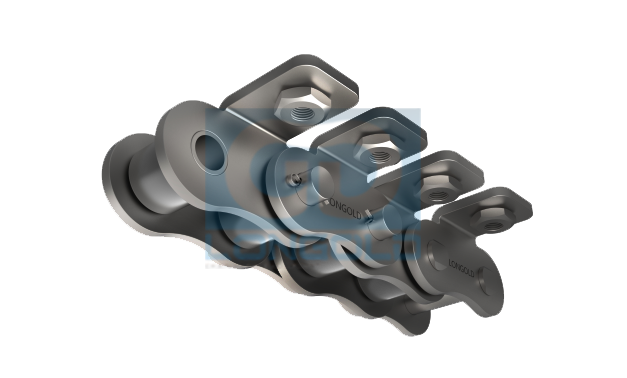 在ANSI標(biāo)準(zhǔn)滾子鏈條的兩側(cè)帶有折彎翼板附件,且附件上安裝螺母,使得安裝夾具等變得更加容易。