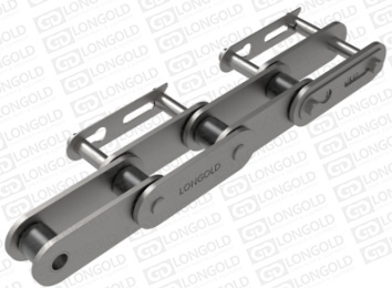 鏈條的一側(cè)銷軸延長的,且延長銷軸的末端帶有卡簧槽,利用卡簧安裝夾具等。附件表示為:EC