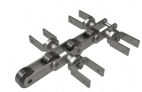 專門用于手套大型先進(jìn)流水線生產(chǎn)的輸送鏈條,鏈條帶側(cè)置滾輪,兩側(cè)的特殊附件能很好的固定手套,方便手套的運(yùn)輸。