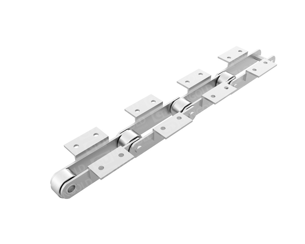 以輸送鏈為基本,安裝加寬的鏈板和摩擦阻力較小的大滾子,可以直接在鏈板上裝載重物的鏈條。采用相當(dāng)于SUS304不銹鋼材質(zhì)具有較高耐腐蝕性。