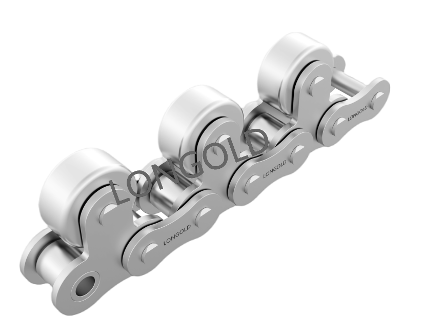 帶頂置滾輪輸送鏈設計用于在輸送系統(tǒng)中提供平穩(wěn)的物料搬運,頂置滾輪有助于減少摩擦,特別是在需要鏈條在特定角度或方向上移動的應用中。