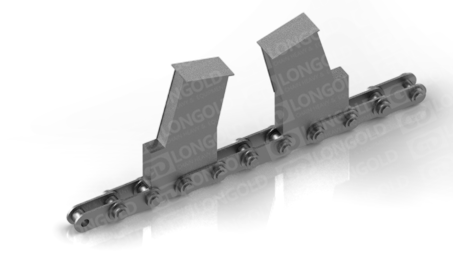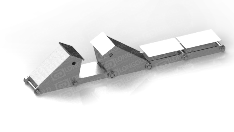 依靠鏈板底部底座附帶的折彎板上的孔將鏈條固定,能防止鏈條在運(yùn)輸過程中出現(xiàn)抖動蛇形等情況,同時鏈板為直板型,方便鋼材的放置和運(yùn)輸。