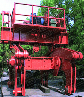 電動杠桿重力式板坯夾鉗、方坯夾鉗,采用杠桿的工作原理,依靠板(方)坯自重夾持板坯并鎖緊,采用電動絞車實現(xiàn)鉗臂的開閉及開口大小的控制。可實現(xiàn)單塊、多塊,板(方)坯的吊運。