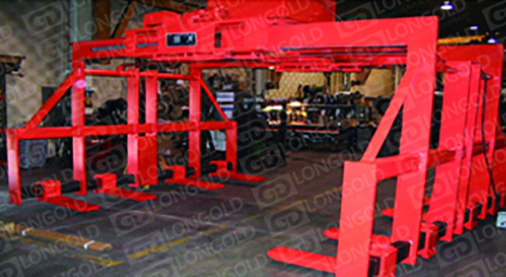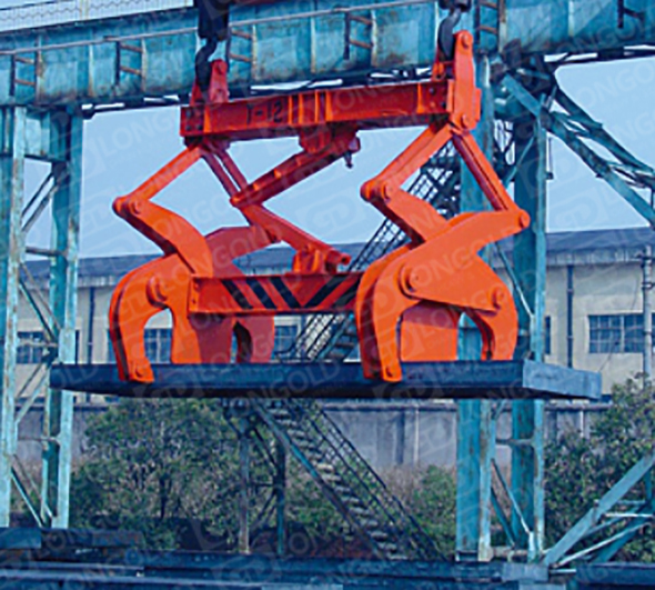 夾鉗采用滑塊連桿的工作機構,靠自重鉤住板材并鎖緊,開閉機構為螺旋往復式自動開閉。夾鉗不需要任何動力源,結構簡單合理,工作范圍大、動作靈活,維護簡便,使用壽命長。適用于多層中、薄板白吊運。