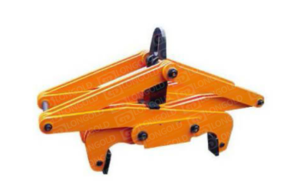 機械杠桿重力式夾鉗,采用杠桿的工作原理,依靠板(方)坯自重夾持板坯并緊鎖,開閉機構為螺旋往復式,能自動實現(xiàn)夾鉗臂的開閉動作,可配置機械或聲光電指示裝置增加開閉動作可靠性。夾鉗不需要任何動力源,結構簡單合理,動作靈活??蓪崿F(xiàn)單塊、多塊板(方)坯的吊運。