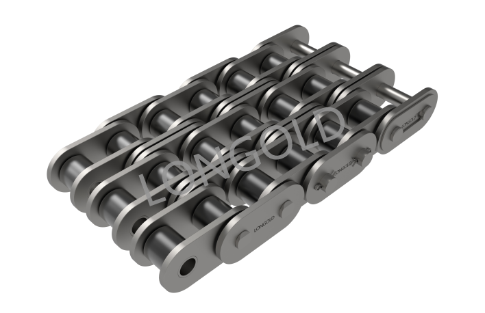將短節(jié)距B系列傳動滾?鏈條的鏈板變更為直板形,直接將?件承載于鏈板之上進?輸送的鏈條。鏈條的列數(shù)是3列。也根據(jù)客戶需求定制非標(biāo)附件加裝在鏈板或者銷軸上。