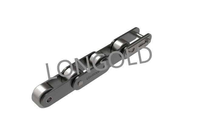 與短節(jié)距A系列滾?鏈條相?,鏈條節(jié)距增加1倍(稱為雙倍節(jié)距),鏈板形狀為直板形,鏈條的單側(cè)帶有彎板附件,且附件上有一個(gè)螺孔的形式。依照J(rèn)IS,ISO和ASME標(biāo)準(zhǔn)。