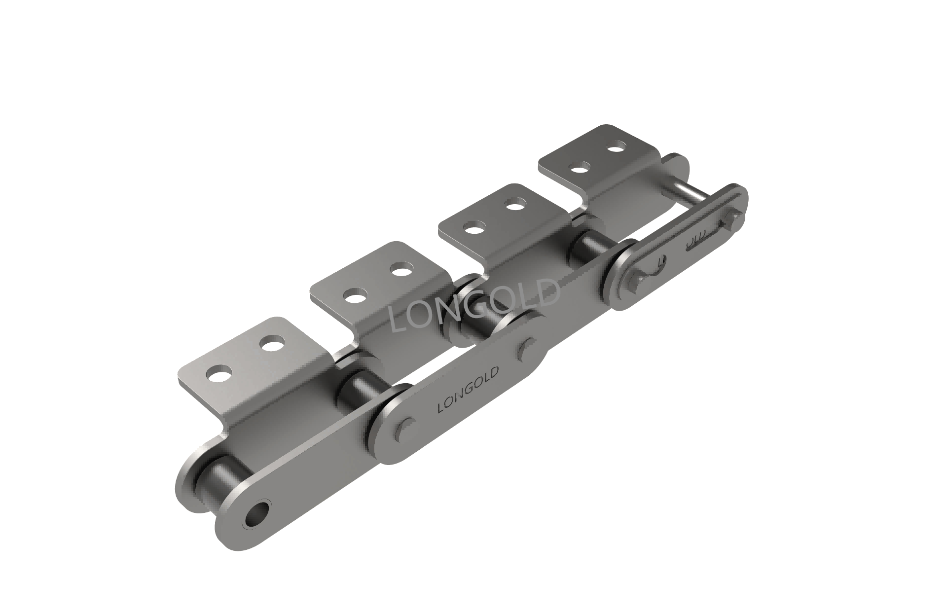 與短節(jié)距A系列滾?鏈條相?,鏈條節(jié)距增加1倍(稱為雙倍節(jié)距),鏈板形狀為直板形,鏈條的單側(cè)帶有直立板附件,且附件上有一個(gè)螺孔的形式。依照J(rèn)IS,ISO和ASME標(biāo)準(zhǔn)。