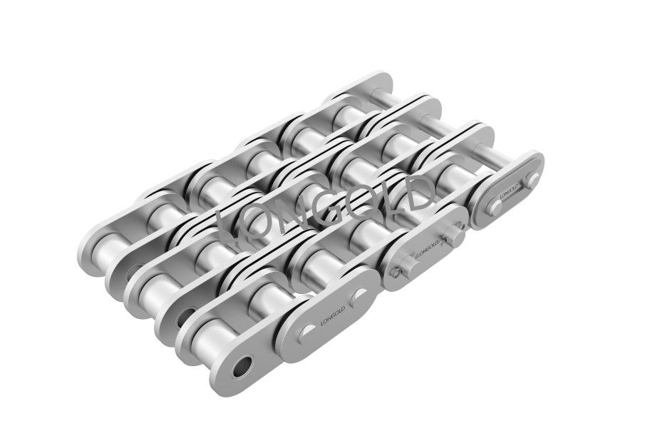 將短節(jié)距A系列傳動滾?鏈條的鏈板變更為直板形,直接將?件承載于鏈板之上進(jìn)?輸送的鏈條。也根據(jù)客戶需求定制非標(biāo)附件加裝在鏈板或者銷軸上。鏈條的列數(shù)為3列,材質(zhì)為不銹鋼材質(zhì)。