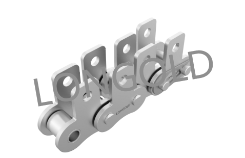 通過各種材料的組合,適合于水中、酸性及堿性等腐蝕性環(huán)境中或低溫、高溫的特殊環(huán)境里使用,且鏈條的單側鏈板延伸作為鏈條附板,且附板上帶有一個孔的A系列小型輸送鏈。材質使用相當于SUS304規(guī)格的不銹鋼材料。