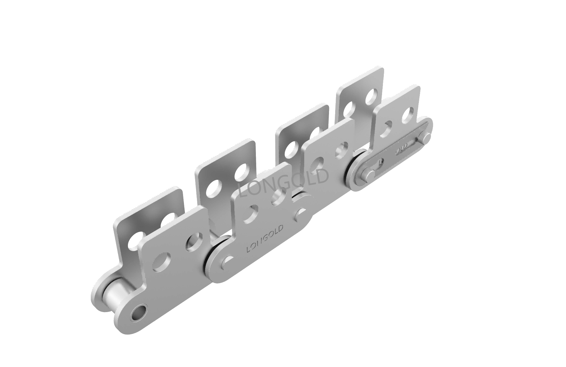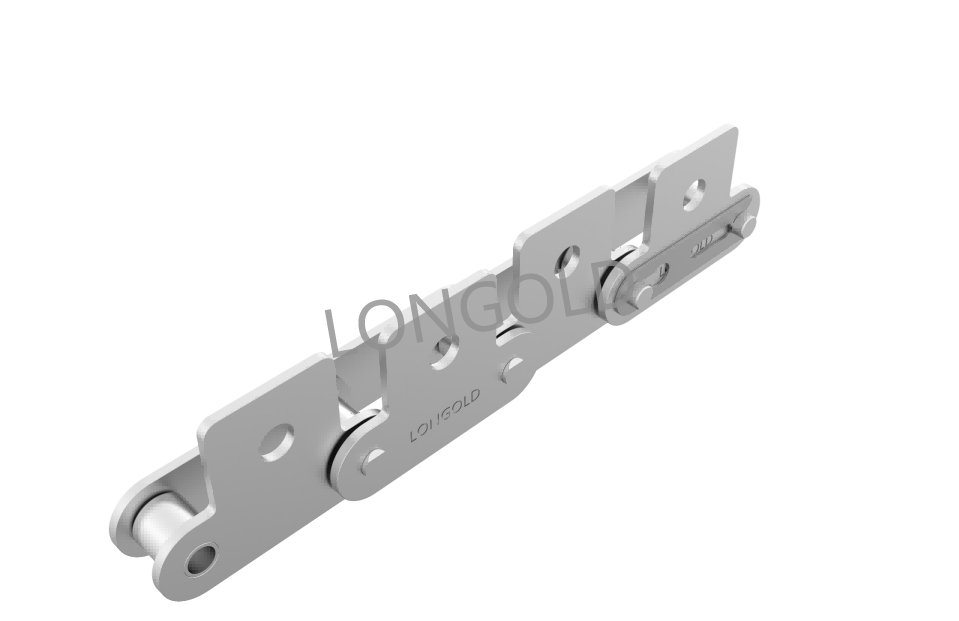 通過各種材料的組合,適合于水中、酸性及堿性等腐蝕性環(huán)境中或低溫、高溫的特殊環(huán)境里使用雙倍節(jié)距鏈,在兩個鏈節(jié)的中心都增加了一個孔,以便能夠在兩個(或更多)平行的行走鏈之間安裝橫桿。鏈條的材質(zhì)使用相當(dāng)于SUS304規(guī)格的不銹鋼材料。