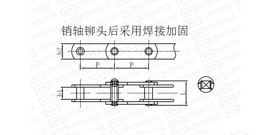 銷軸鉚頭后采用焊接加固的形式,使鏈條的安全性更高。