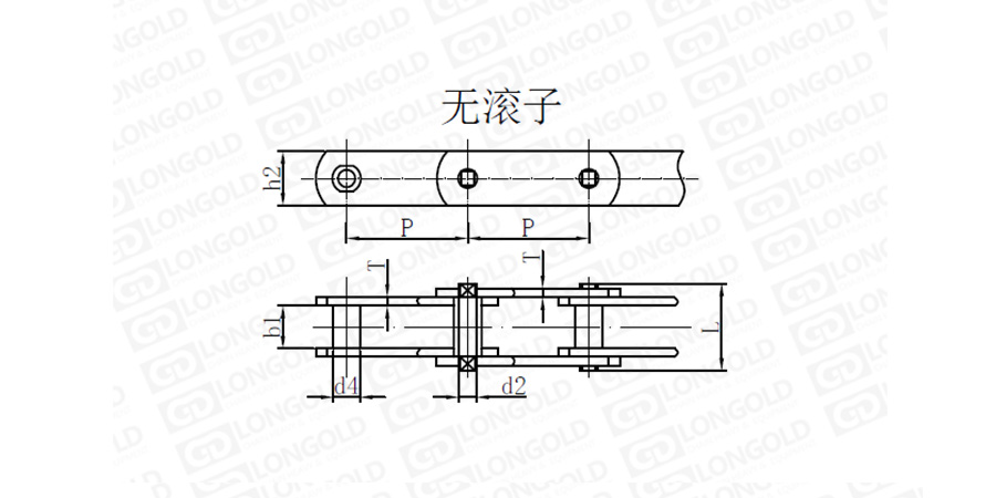 上圖為無滾子M系列標準輸送鏈的結構圖。