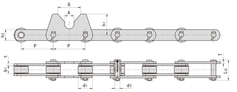 此類型鏈條多用于需要在鏈條上安裝或固定某一物件的工作場合,也廣泛應(yīng)用于鏈?zhǔn)捷斔蜋C等輸送機械,為其傳遞動力和輸送物料。
