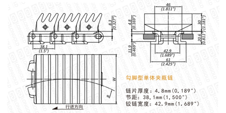 上圖為L(zhǎng)DGW878T系列 一體式夾瓶鏈的結(jié)構(gòu)圖,圖紙已標(biāo)明本體尺寸。