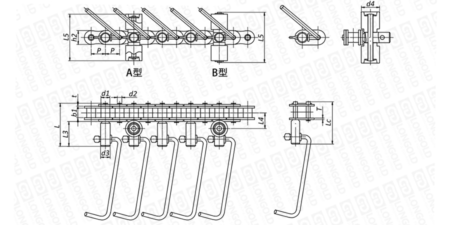 附件是為了將夾具安裝在鏈條上的零部件??筛鶕?jù)客戶要求設(shè)定安裝間隔。