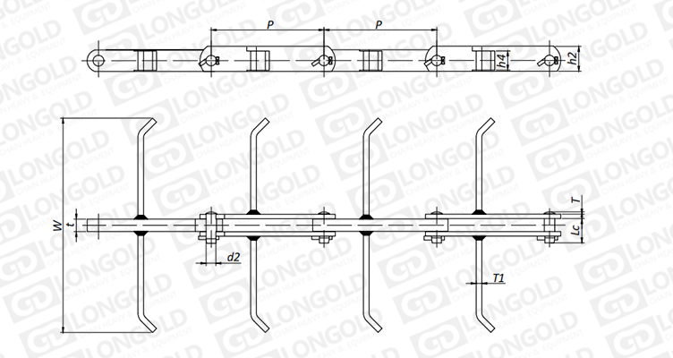 附件是為了將夾具安裝在鏈條上的零部件。可根據(jù)客戶要求設(shè)定安裝間隔。