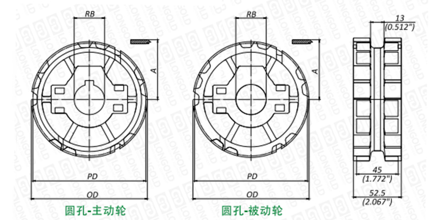 注:英制圓孔主動輪提供固定螺栓,公制不提供。