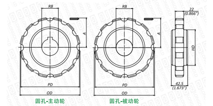 注:英制圓孔主動(dòng)輪提供固定螺栓,公制不提供。