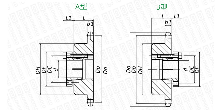 上圖為2060R雙倍節(jié)距鎖式鏈輪的結構圖。