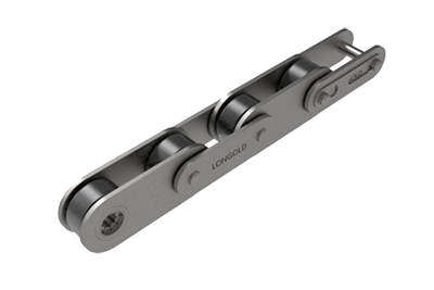 在銷軸和套筒之間插入鋼制滾針,鏈條的其他部件為鋼制,鏈板做鍍鎳處理的特殊鏈條。可用于以前無法使用鏈條的輸送系統(tǒng),適應自動化、省力化和高速化需求,提高生產(chǎn)效率。