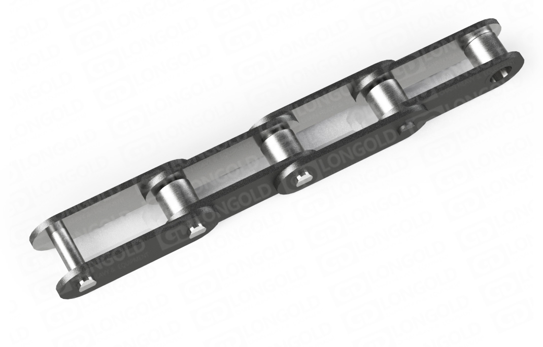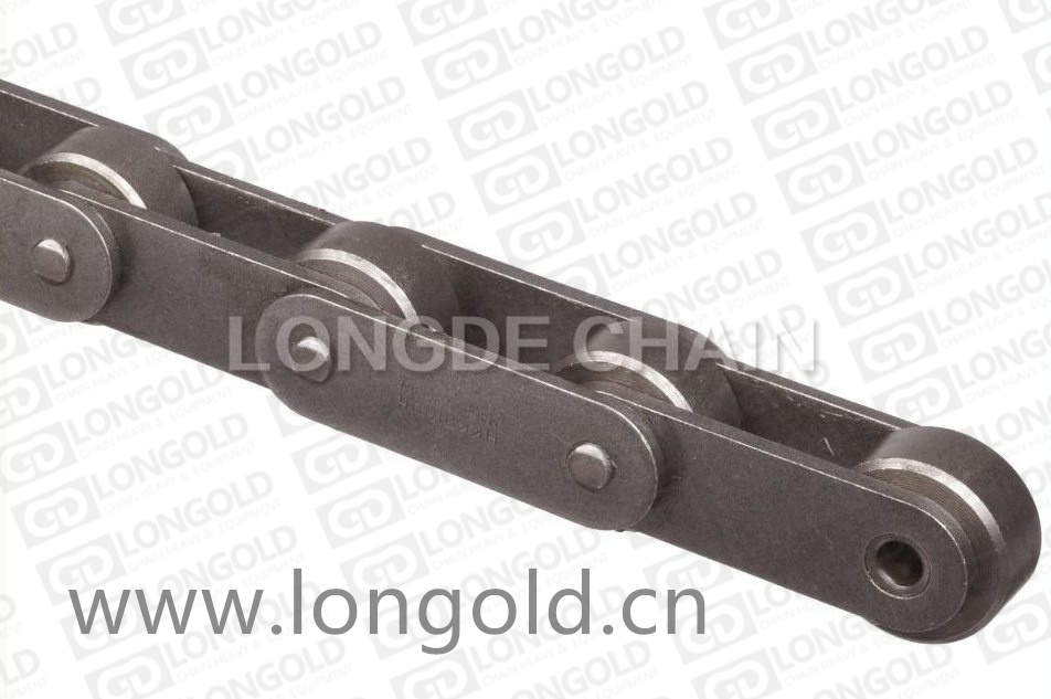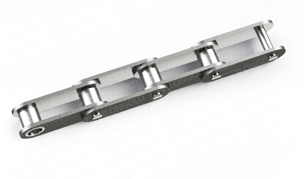 此種輸送鏈,是由雙節(jié)距鏈條衍生而來(lái)的,鏈條節(jié)距為非常用規(guī)格,主要用于物料的輸送。