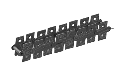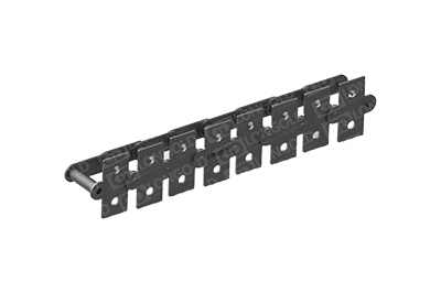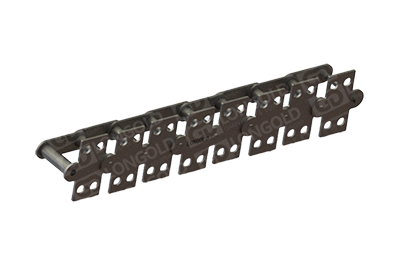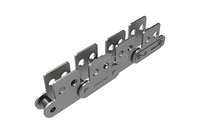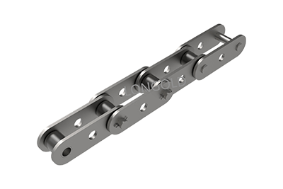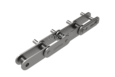 與短節(jié)距A系列滾?鏈條相?,鏈條節(jié)距增加1倍(稱(chēng)為雙倍節(jié)距),鏈板形狀為直板形,鏈條的滾子分為S型滾子和R型滾子,且?guī)Ц郊妮斔?鏈條。