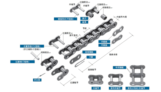 不同類型的鏈條,如傳動鏈條、輸送鏈條、曳引鏈條等,其構(gòu)造會有所不同,以適應特定的應用需求。