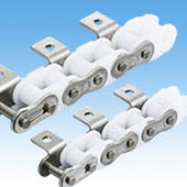 將附件安裝在ANSI標(biāo)準(zhǔn)滾子鏈的鏈板上 適用于高速·順暢·靜音地輸送 |